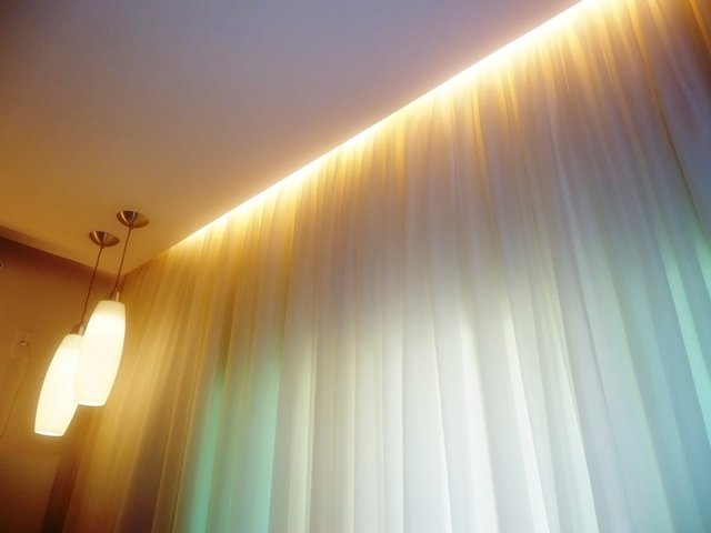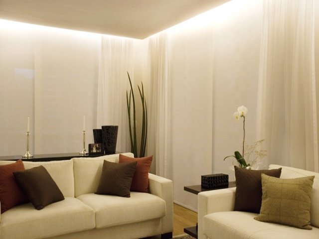O Cortineiro é o espaço deixado no forro do teto para esconder o varão ou trilho da cortina e tem em média 15cm. Pode ser embutido ou ter uma moldura para fazer o acabamento e é bem vindo para muitos ambientes como quarto, sala, cozinha entre outros. |
